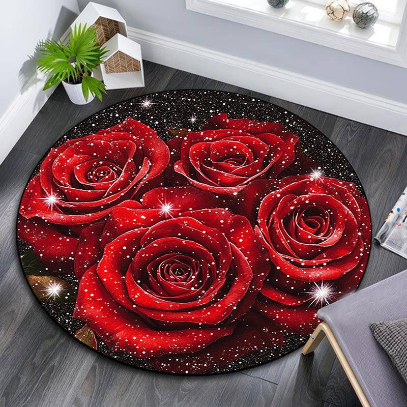 Red Roses Round Area Rug,Carpet Rug for Living Room Bedroom Sofa Playroom Decor,Non-slip Floor Mat