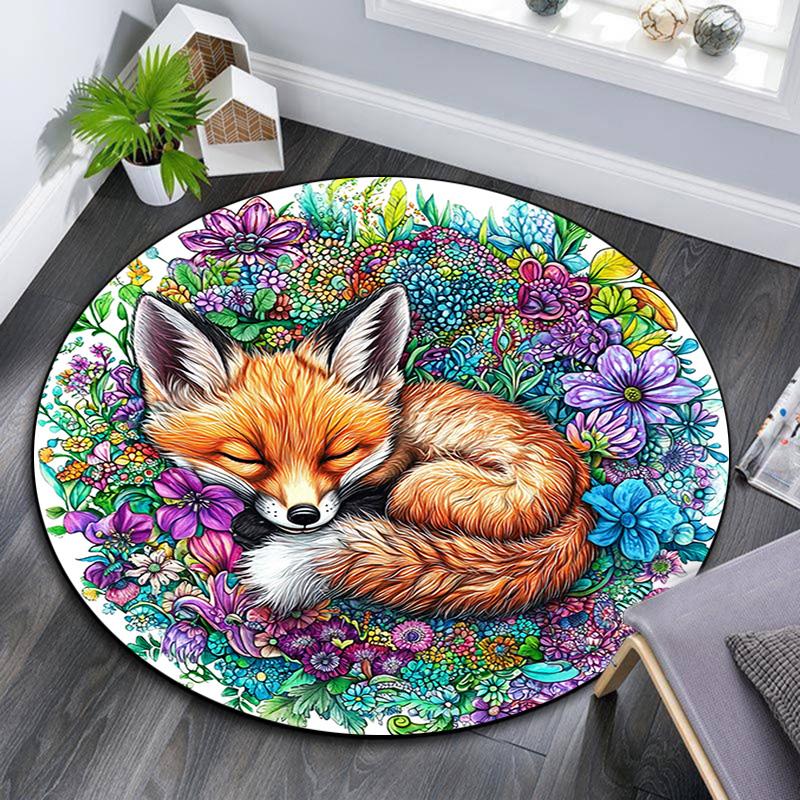 Sleeping Fox Round Area Rug,Carpet Rug for Living Room Bedroom Sofa Playroom Decor,Non-slip Floor Mat
