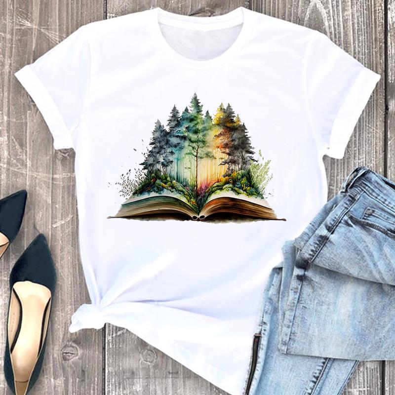 Evropská velikost Tričko Dámské Kreslený Lesní Trend Roztomilé Dámské Krátký Rukáv Oblečení Potisk Módní Grafické Trička Dámské Tričko
