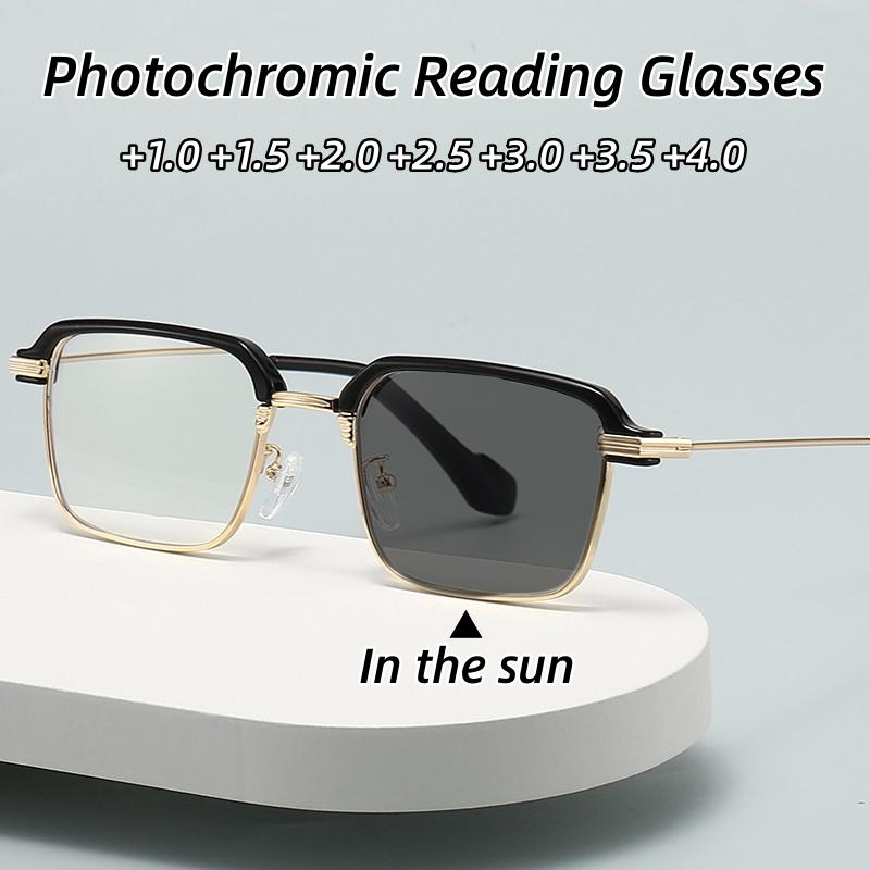 Smart Photochromic Reading Glasses Unisex UV Sunglasses Metal Half Frame Far-sighted Eyewear for Men Women Outdoor
