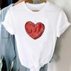 (European Size) 90s Top T Shirt Watercolor Love Heart Trend Cute Fashion Casual Clothing T-Shirt Sleeve Women Print Lady Female O-neck Graphic T-shirt
