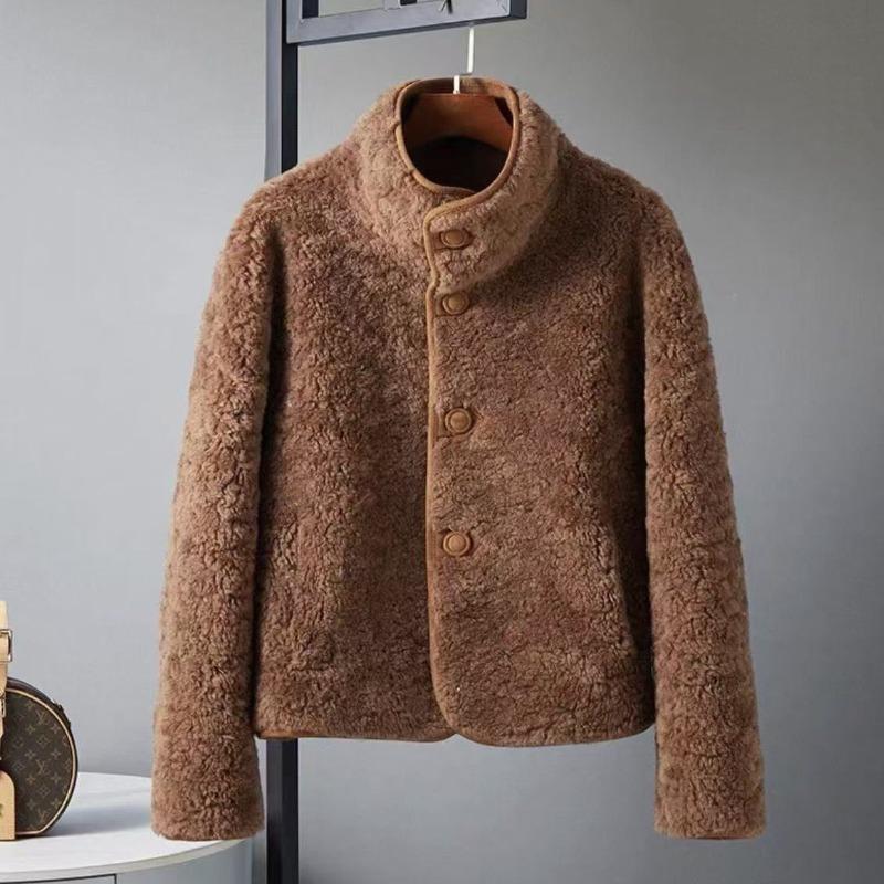 Maillard on both sides, loose stand-up collar, lamb wool coat, women's clothing, sheep shearing short coat, autumn and winter chic