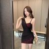 Celebrity mesh yarn single shoulder suspender dress women's summer temperament senior sexy royal sister sequined hip skirt