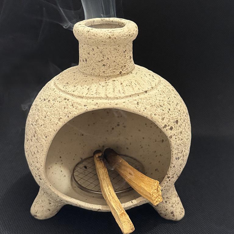 Handmade Ceramic Tabletop Chimney Incense Burner Painted Chiminea For Incense Cones Charcoal Sage or Palo Santo Burning Holder