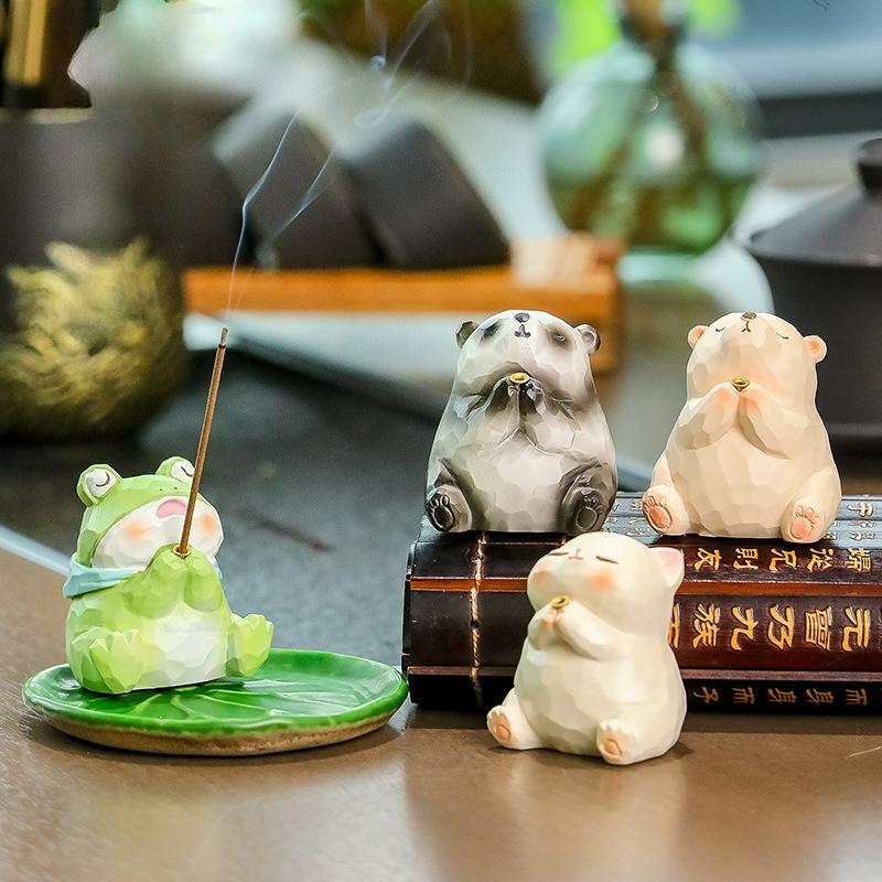 Roztomilé řemeslné výrobky Pryskyřičná žába Panda Vkládání vonných tyčinek Řemeslný výrobek Kadidelnice Kreslená zvířecí dekorace Držák na vůni Kancelář