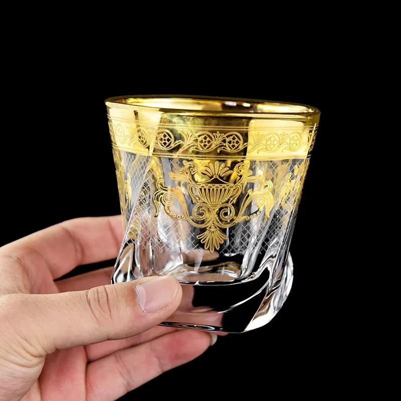 Evropská silnostěnná křišťálová sklenice na víno Sklenice na whisky sklenice se zlatým vzorem zvonku Sklenice na pivo