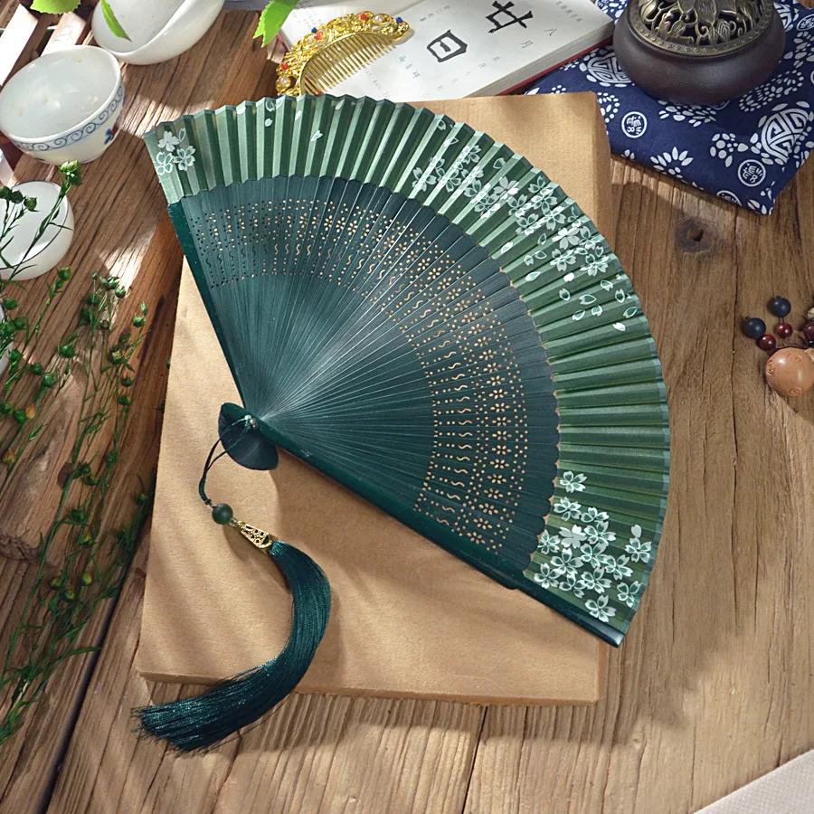 Fan Summer portable Chinese Hanfu antique green folding fan Women's cheongsam folding small fan