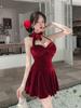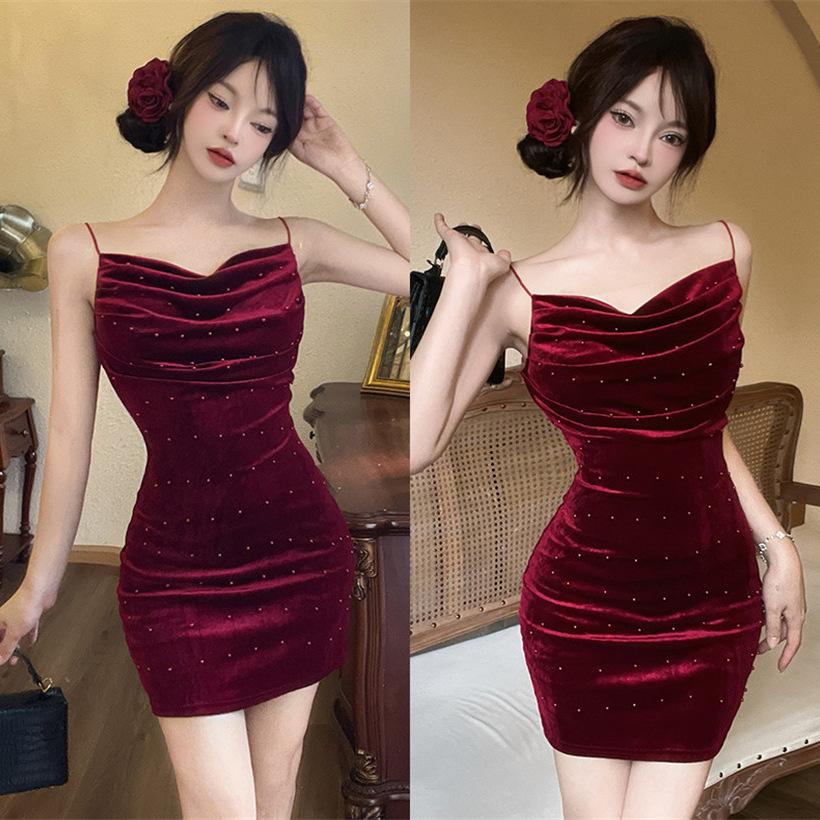 Celebrity temperament velvet suspender dress women's summer atmosphere waist thin bright diamond tube top hip short skirt