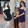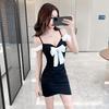 Work temperament famous daughter suspender one-word shoulder dress summer lotus leaf edge sexy and thin hip skirt woman