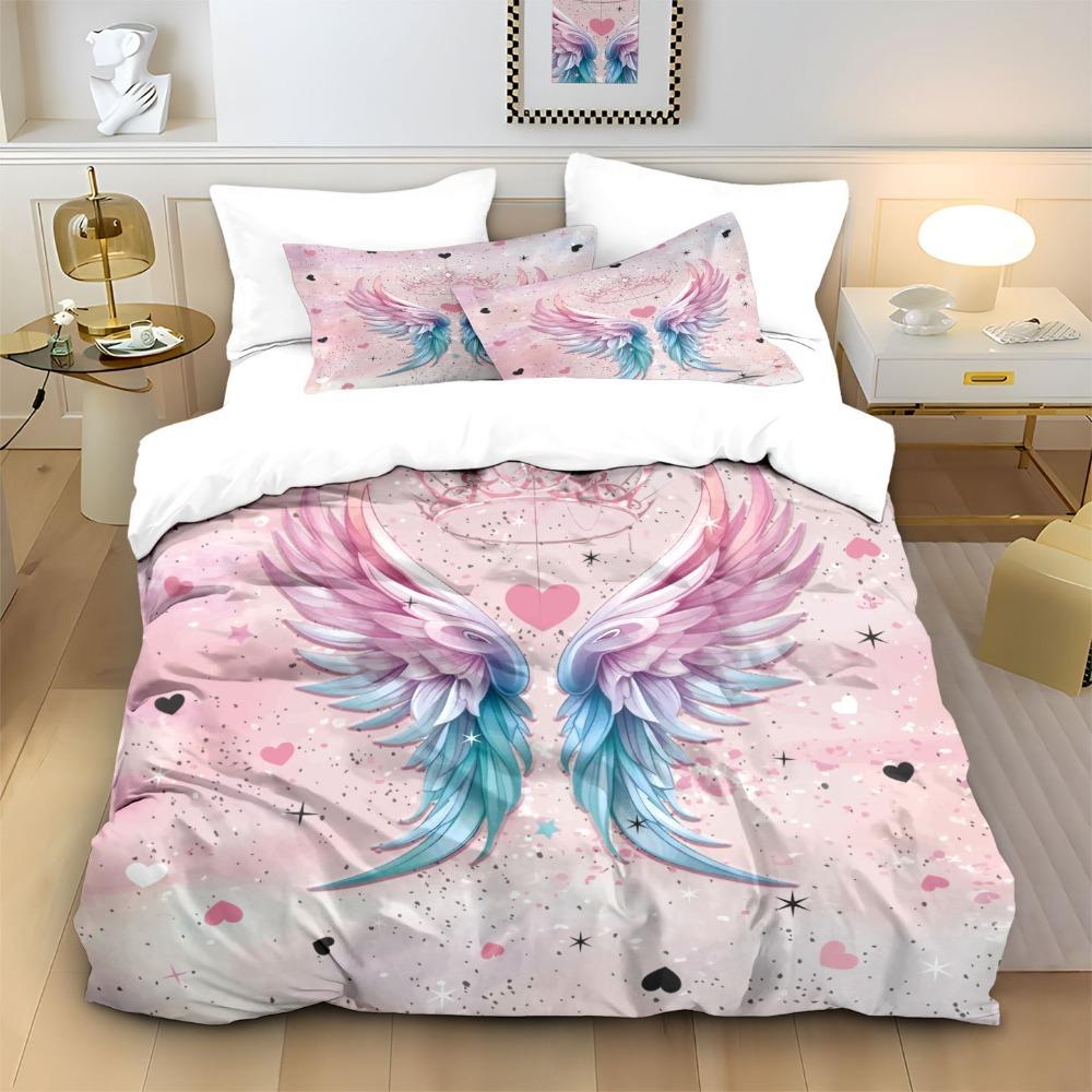 Pink angel wings Duvet Cover pillowcase Bedroom Decoration Children Gift adult Single Double bed Large SizeZip Duvet Cover