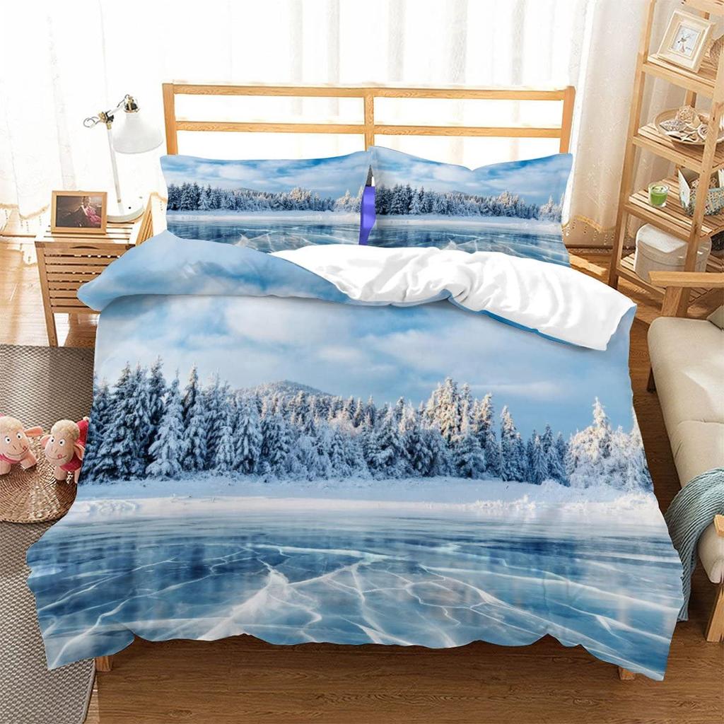 Frozen Lake Duvet Cover Sets for Teens Queen Lightweight Quilt Cover with 2 Pillowcase Winter Themed Bedding Sets No Comforter