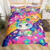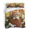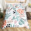 Cat and Flowers Duvet Cover Queen King Size Lightweight Quilt Cover with 2 Pillowcases Spring Animal Themed Bedding Set No Quilt