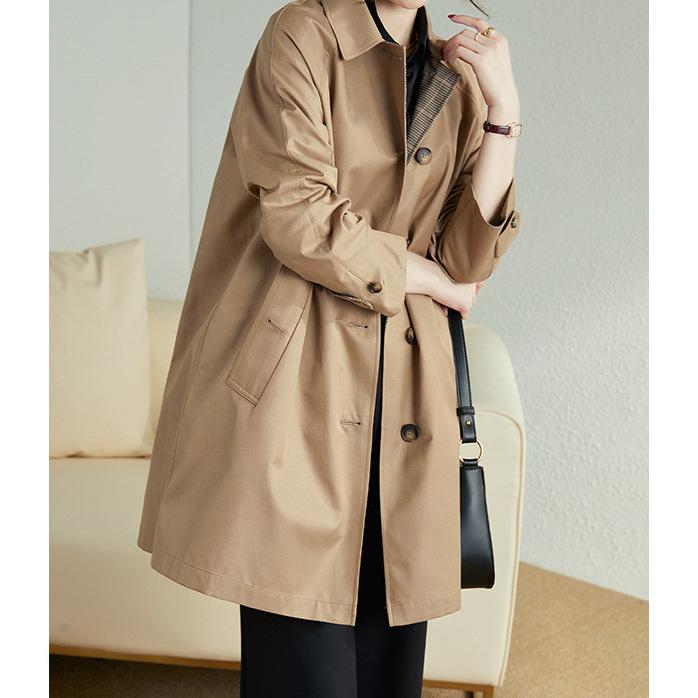 Khaki trench coat women's spring and autumn women's clothing wear versatile casual medium and long coat