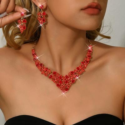 Sada náhrdelníku a náušnic Banketní Večerní Šaty Dvoudílné Doplňky Luxusní Kamínky Svatební Šperky Ženy