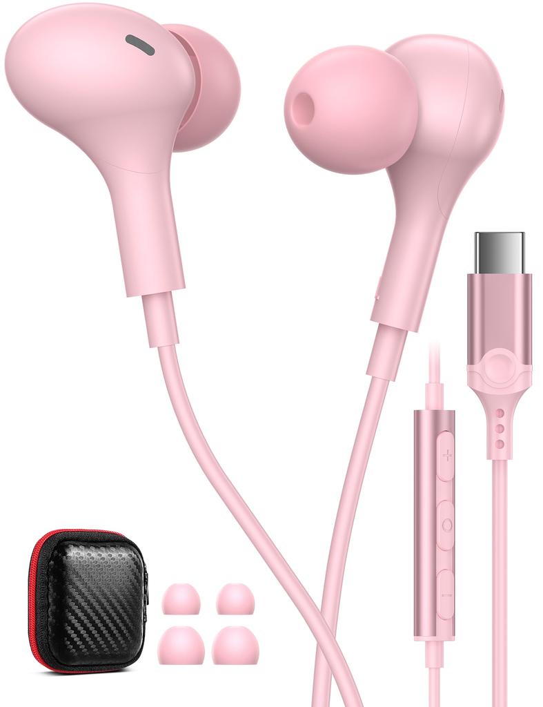 Type-C wired earphones with microphone for PC, iPhone 17/16, in-ear type, noise-canceling earphones, high-quality sound, deep bass, perfect for teleworking, Zoom meetings, in-ear type, hands-free calling, magnetic storage, USB-C, cute, USB-C earphones, stereo earphones, wired headphones with remote control, compatible with iPhone 17/16/15/15 Plus/15 Pro/15 Pro Max, Google Pixel 10/9/8/8 Pro/7a/6/6a/5a/4XL, iPad Pro 12.9-inch (3rd/4th/5th/6th generation)/11-inch/Air 4th generation/Air 5th generation/iPad mini 6 (6th generation), iPad 10th generation/11/A16, Samsung Galaxy S22/S23/S24/S25/Ultra/S23/FE/Z Fold/7/6/5/Z Flip/A53 Compatible with A54, A52, M23 5G, Galaxy Note 20/10, XiaoMi Pad 7, 5, Pad 6, and XiaoMi 15T