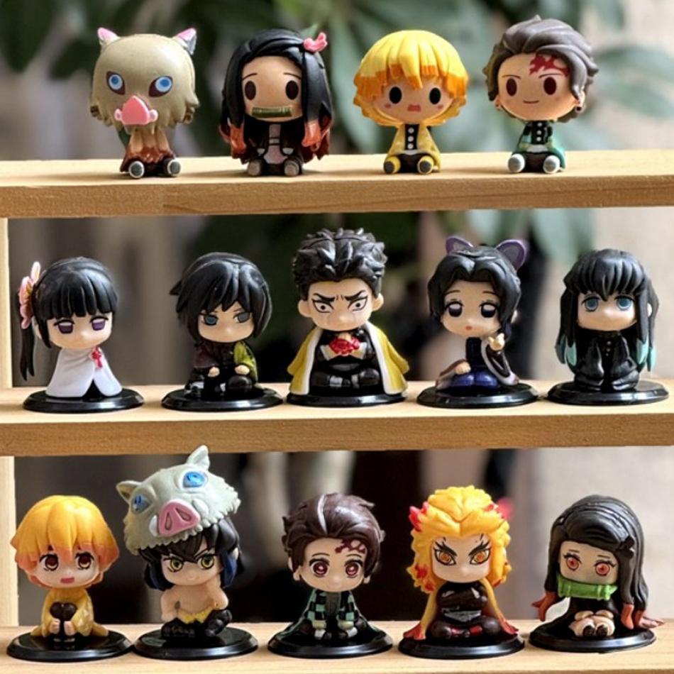 4-15pcs/set Demon Slayer Anime Figure Toy-Kimetsu No Yaiba Q Version Tanjiro Nidouzi Inosuke Zenizu PVD Figurine Model Doll Gift