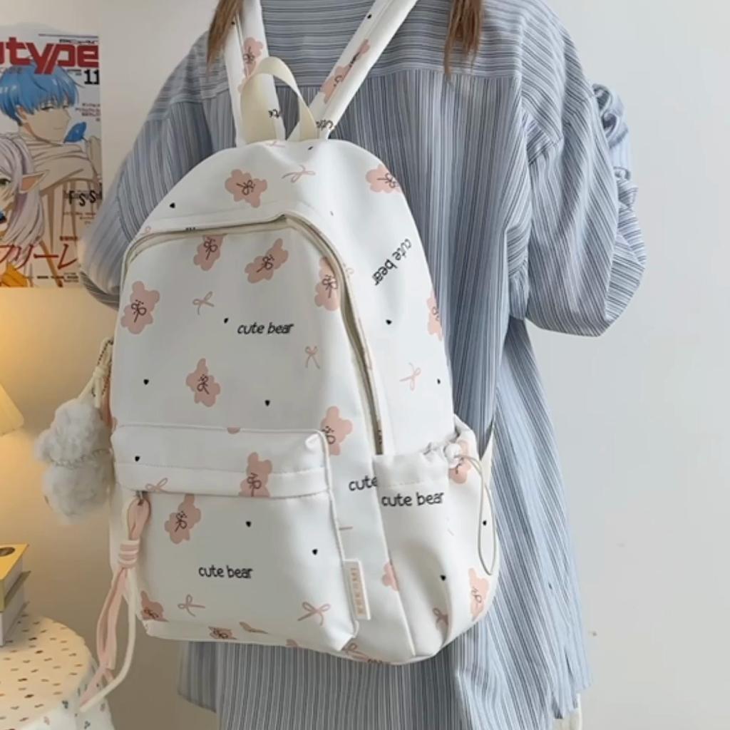 Cute Bear Print Backpack for Women and Girls Fashion School Travel Daypack with Front Pocket