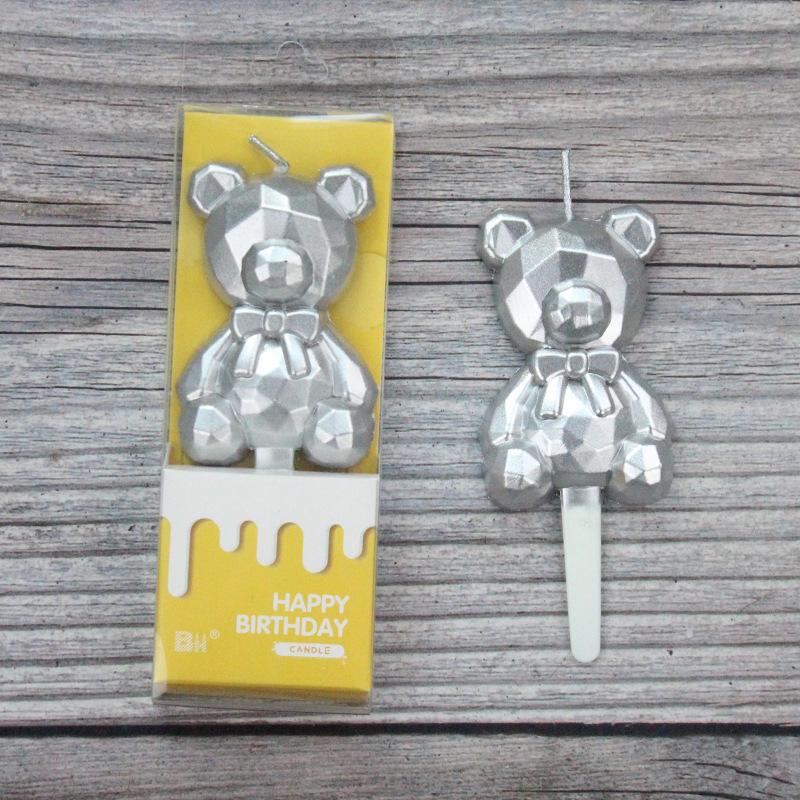 Birthday Cake Decoration INS Diamond Bear Candle Cute Cartoon Children's Party Baking Decoration Supplies