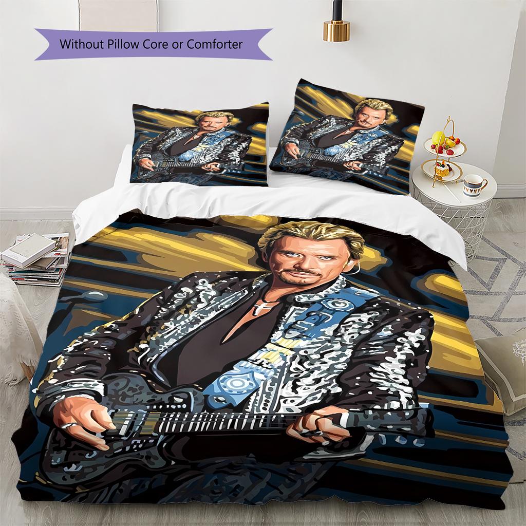 Johnny Hallyday Pattern Bedding,Quilt Set Quilt Cover Pillowcase Home Birthday Gift (1 * duvet cover + 2 * pillowcase, without core)