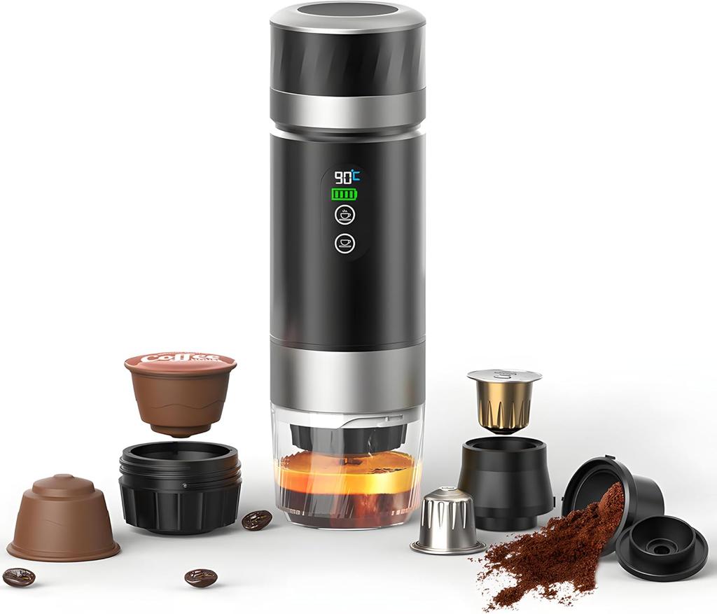 [Best travel companion]: Ideal gift for friends or family who love camping and travelling, but also like espresso. The machine heats coffee in one go and is easy to clean. Convenience and great taste are guaranteed. The automatic espresso machine weighs only 900 g. The size of a water bottle, it is super easy to store and transport. Thanks to its compatibility with a USB-C car charger, it is ideal for all travel situations.
