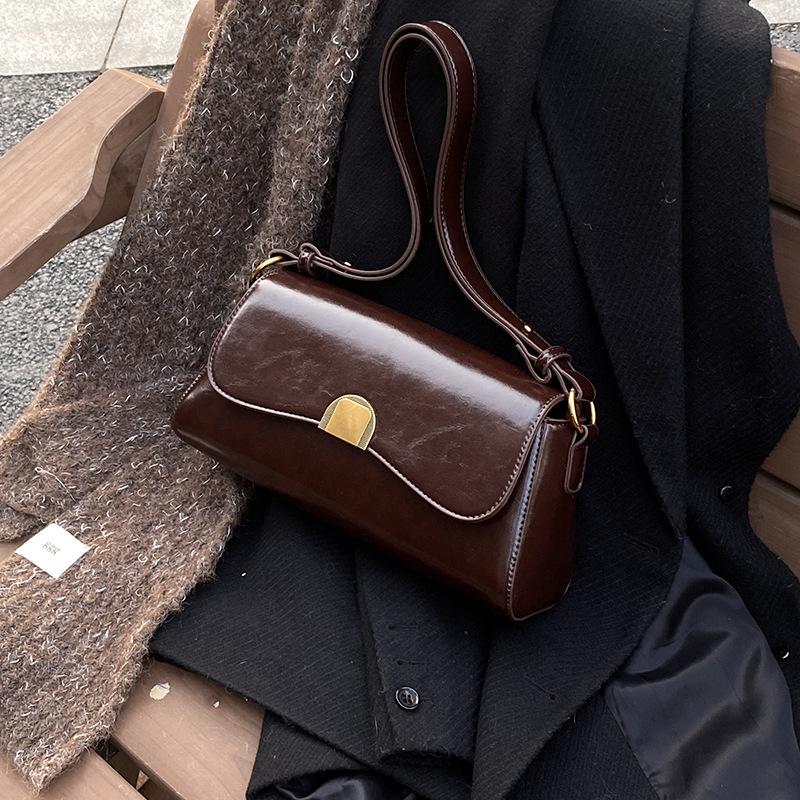 Premium texture underarm bag women's new retro oil wax leather shoulder messenger bag niche versatile baguette bag