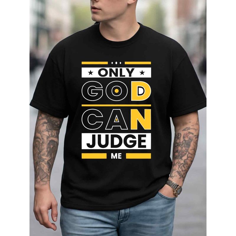 European sizes Men'S "Only God Can Judge Me" Graphic T-Shirt , Round Neck Short Sleeve Casual Shirt for Casual Attire