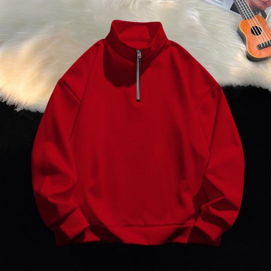 Yousheng Men Sweatshirt Half Zipper Stand Collar Long Sleeves Solid Color Pullover Mid Length Sport Casual Top Lightweight Clothes for Travel Office