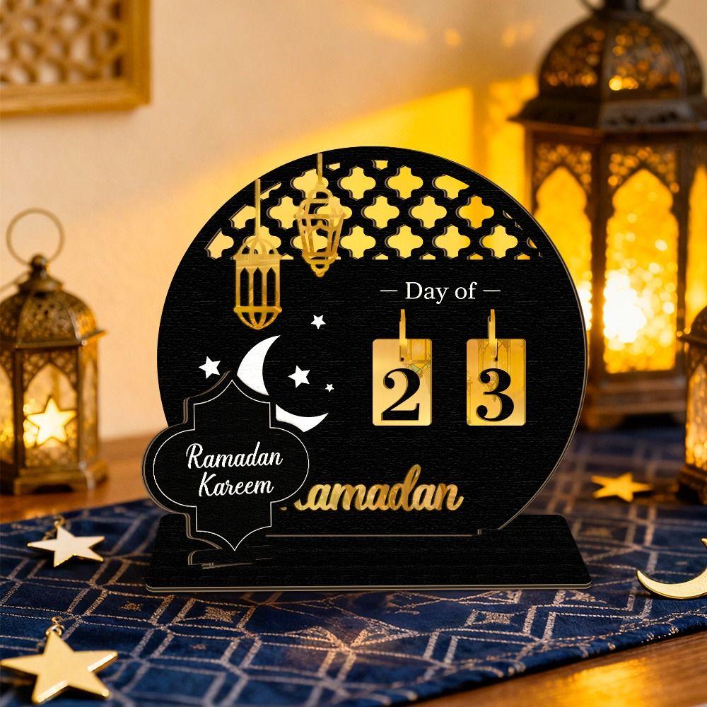 Black Gold Ramadan Countdown Calendar Acrylic with Wooden Base Advent Calendar Replacement DIY Islamic Decoration