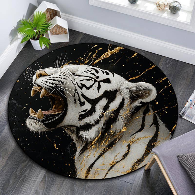 Roaring Tiger Round Area Rug,Carpet Rug for Living Room Bedroom Sofa Playroom Decor,Non-slip Floor Mat