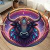 Bohemian Buffalo Skull Round Area Rug,Carpet Rug for Living Room Bedroom Sofa Playroom Decor,Non-slip Floor Mat