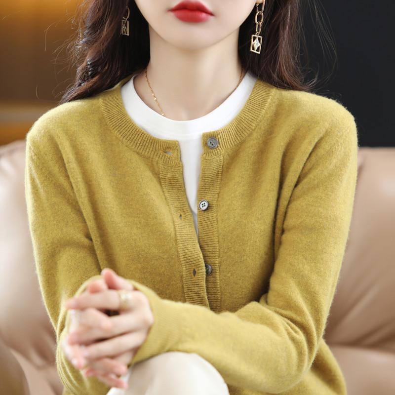 Gentle round neck knitted cardigan female slim and thin long sleeves with spring and autumn sweater jacket