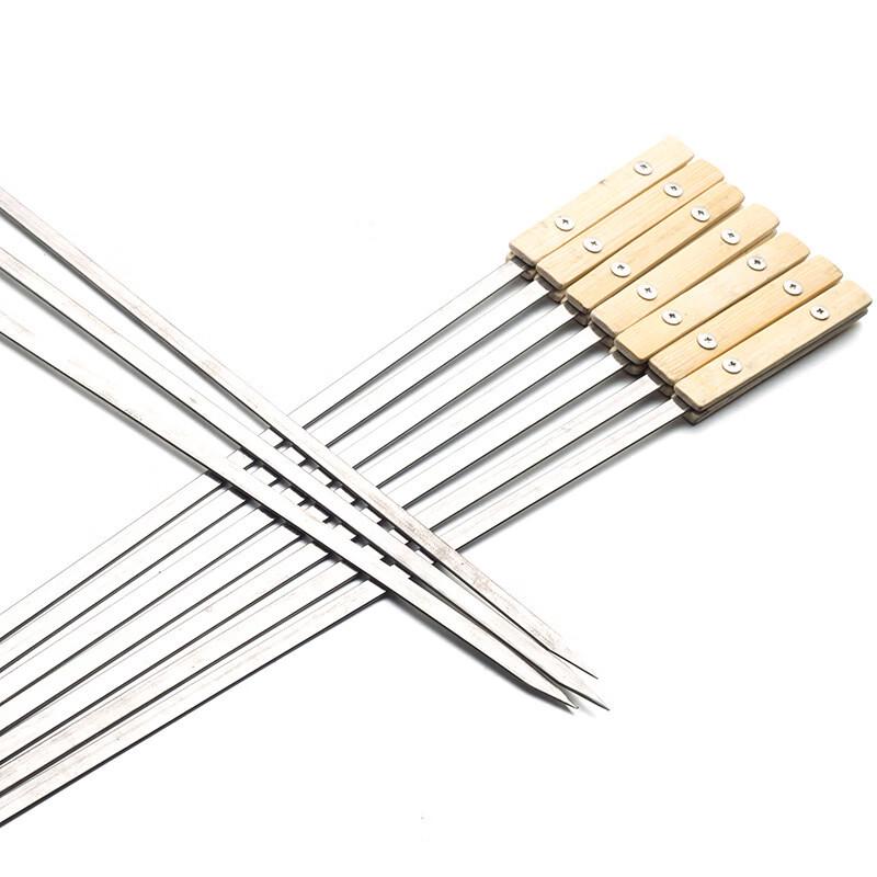 Zhishi Commercial Stainless Steel Flat BBQ Skewers with Wooden Handle