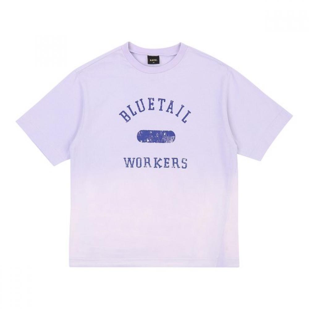 This is a stylish t-shirt with a sensitive violet color and preppy graphics. The bottom of the t-shirt is naturally bleached to give a gradation effect, giving it a cool and vintage feel.