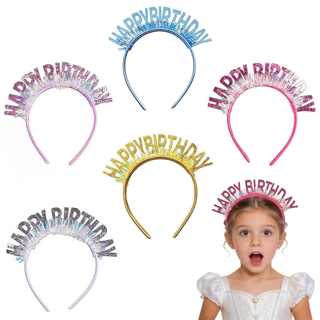 [VsltEdge] Birthday Decorations Headbands, Birthday Crown Set of 5, Colorful Birthday Crowns, HAPPY BIRTHDAY Party Decorations, Birthday Decorations,