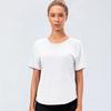 Dámské volné tričko na jógu s krátkým rukávem, pocit jako druhá kůže, barva nude