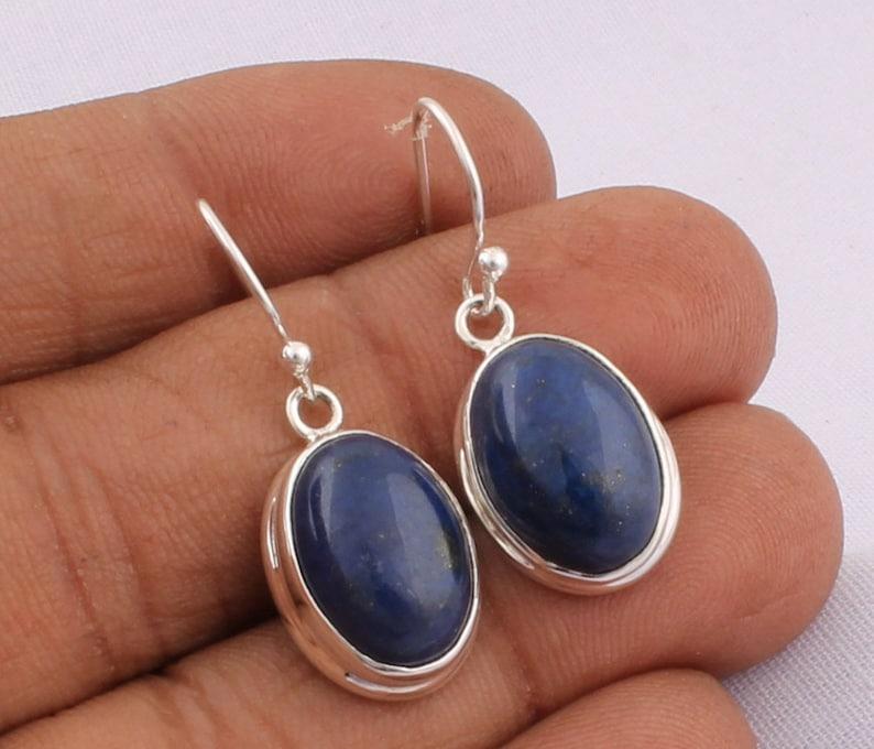 Solid 925 Sterling Silver Women Dangle Droop Earrings, Lapis Lazuli Earring Silver Boho Jewelry Gift For Birthday