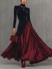 2026 Spring Elegant Velvet Patchwork Dress with Flare Skirt and High Neck