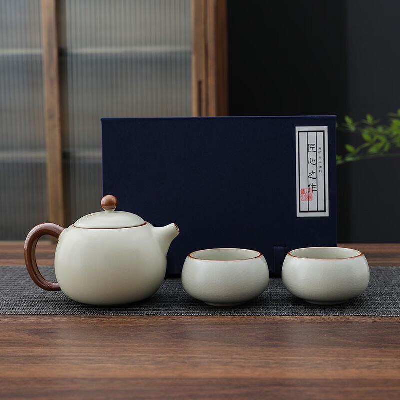 Beige Ru Kiln Gongfu Tea Set with Xishi Pot