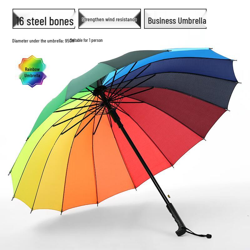 Nanqiao Creative 16-Rib Semi-Automatic Rainbow Straight Umbrella