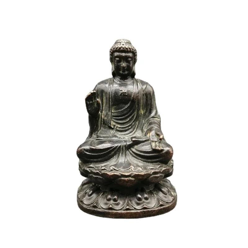 Retro Copper Tathagata Buddha Statue Home Decoration Brass Sculpture Retro Living Room Office Desk Ornament Miniatures Figurines.