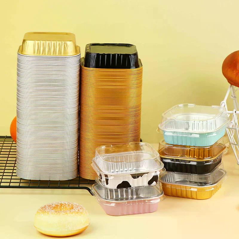 Jednorázové čtvercové hliníkové plechy na pečení s víčky na koláče, muffiny, chléb, nádoby na skladování potravin, 100 ks
