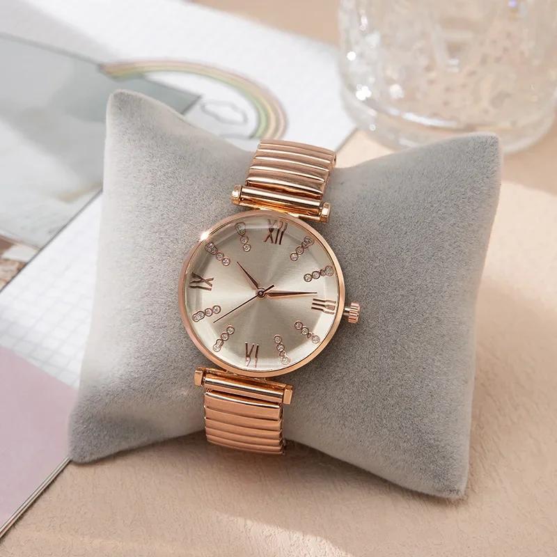 Women's Watch Fashion Alloy Strap Rhinestone Stretch Band Quartz Wristwatches Roman Numerals Decorate Jewelry relógio feminino