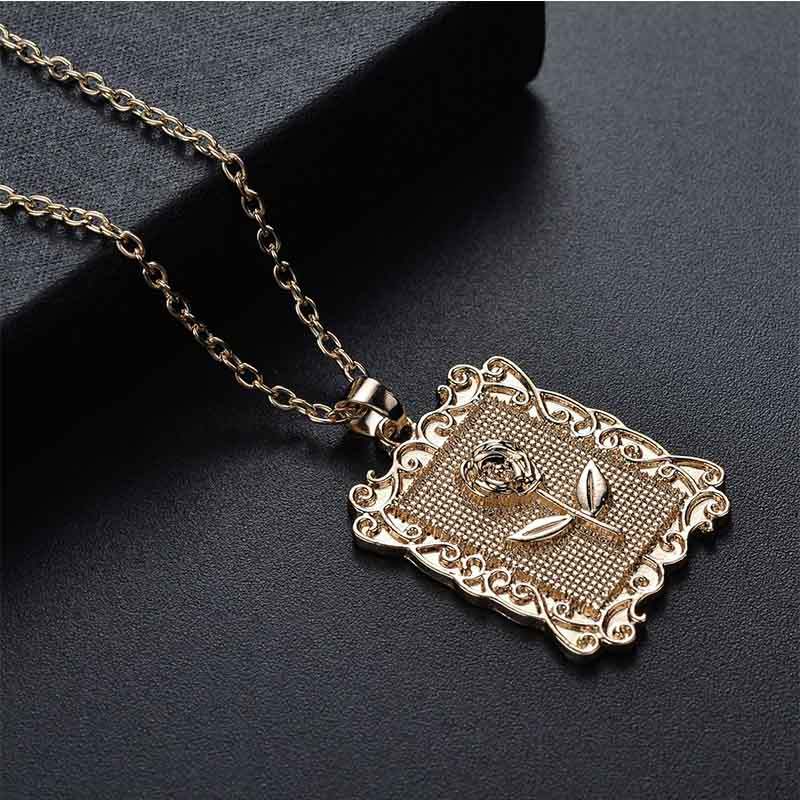 Pozlacený Pop Geometrický Čtvercový Růžový Květ Řetízek na Klíční Kost Svetrový Řetízek Elegantní Šperky Pro Ženy