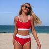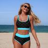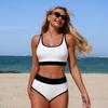 Dámské dvoudílné plavky Color Block s U výstřihem, plavky s vysokým pasem, plážové oblečení, módní bikini