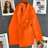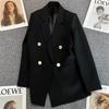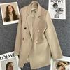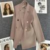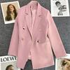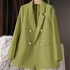 Dámský oblekový kabát s klopami, dlouhým rukávem, dvouřadým zapínáním, kapsami, jednobarevný, volného střihu, střední délky, business svrchní oděv