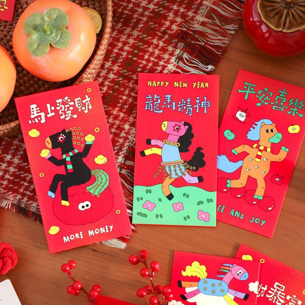 6Pcs/Set Traditional 2026 Horse Year Red Envelope Paper Chinese New Year Envelope Birthday Gift