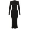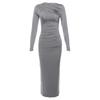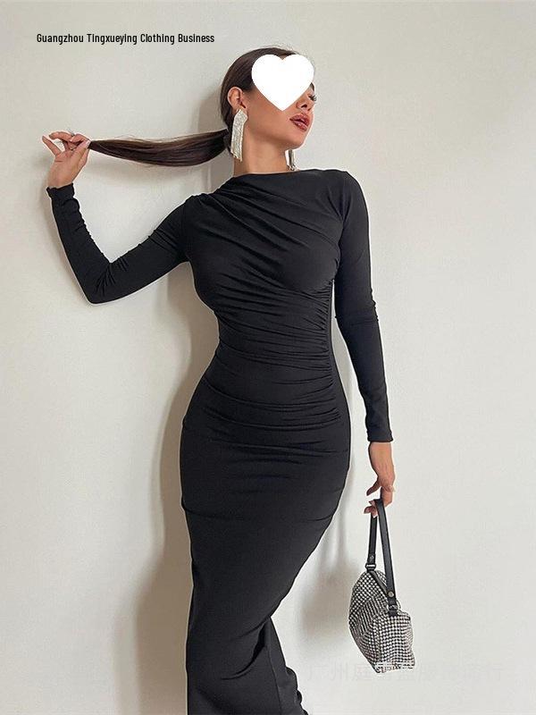 This elegant bodycon dress features a European style design with a sophisticated round neck and long sleeves, offering a slim fit silhouette that enhances your natural curves. Crafted from high-quality polyester, the dress is both comfortable and durable, making it perfect for various occasions. The knitted fabric adds a touch of texture, ensuring a chic and polished look that is timeless and versatile.
