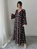 Elegant V-neck Middle Eastern Embroidered Lace Long-sleeved Muslim Robe Dress