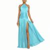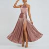 2026 Spring European and American Pleated Long Dress with High Waist Slit for Women
