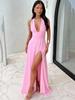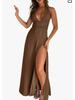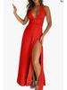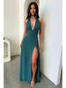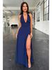 Jarní příchod: Elegantní evropské a americké dámské maxi šaty s halter výstřihem do V a rozparkem